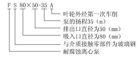三、FS型臥式玻璃鋼離心泵,FS型軸聯(lián)玻璃鋼離心泵型號意義: