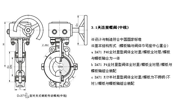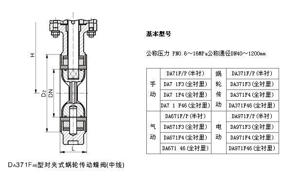 1、其基本類型有兩種,即D71F4和D71F46(中線)全襯里型對夾式蝶閥與D41F4和D41F46(中線)全襯里型法蘭連接蝶閥,采用對分兩片式閥體組合,