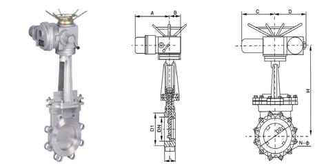 梅花型電動(dòng)刀型閘閥,凸緣電動(dòng)刀形閘閥,凸緣電動(dòng)刀閘閥,凸緣電動(dòng)對(duì)夾刀閘閥主要外形及連接尺寸(mm)