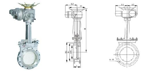 電動刀閥,電動刀形閘閥的構(gòu)造圖及主要外形及連接尺寸(mm)